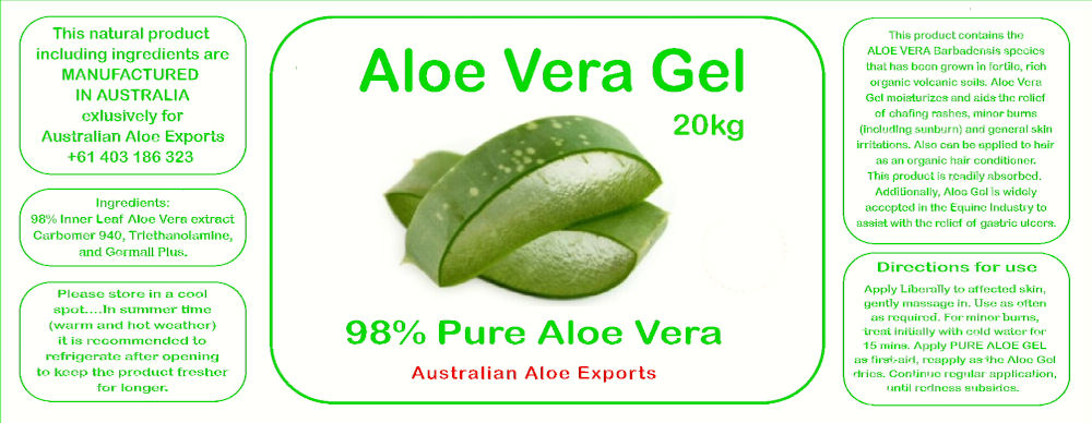 Min order 96 x 20kg tubs98% pure clear Aloe Vera GelFragrance free soothing, moisturising Gel, restores & repairs chapped skinRelieves damage by sun, wind, minor wounds and abrasionsHydrates, replenishes and moisturises skin